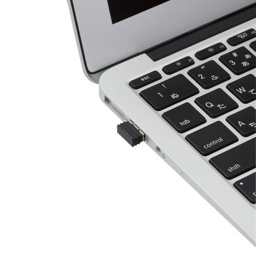 ●ノートパソコンのUSBポートに接続しても気にならず、装着したまま持ち運び可能な1円玉サイズのマイクロレシーバを採用しています。