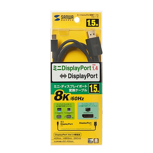 サンワサプライ ミニDisplayPort変換ケーブル (Ver1.4) ブラック 1.5m KC-DPM14015 1本