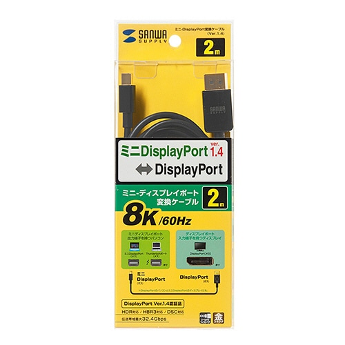 サンワサプライ ミニDisplayPort変換ケーブル (Ver1.4) ブラック 2m KC-DPM14020 1本