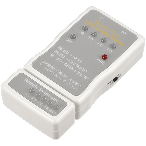 | 商品仕様 | ●その他仕様/●対応ケーブル:RJ45ケーブル(UTP/STP)、RJ11ケーブル(6極4芯) ●電源:電池(9V角形電池×1本)※別売 ●寸法:本体/66×28×134.5mm、リモート機器/66×28×29mm ●重量:本体/約80g、リモート機器/約30g ●付属品:キャリングケース、RJ-11用アダプター(2個)、取扱説明書 ●保証期間:1年 |