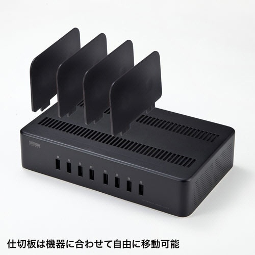 サンワサプライ USB充電スタンド(8ポート・合計19.2A・高耐久タイプ) ブラック ACA-STN74BK 1個