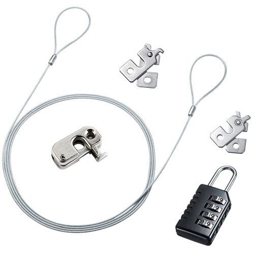 商品仕様 | ●錠タイプ/ダイヤルキー(分離型) ●ワイヤー径/2.2mm ●ワイヤー長/2m ●セット内容/ワイヤー、ダイヤル錠(4桁)、スロット用パーツ(3点) ●備考/※機器側の規格により、スロットの深さが合わない場合があります。 |
