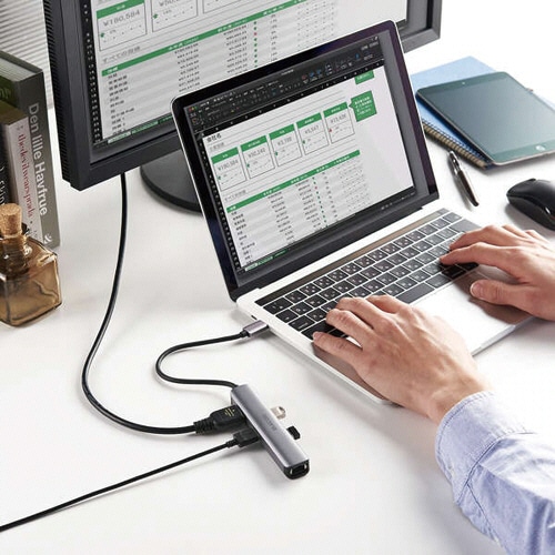 ●HDMIで映像出力しながらUSB機器や有線LANを使用するのに適したUSB Type-C接続ドッキングステーションです。