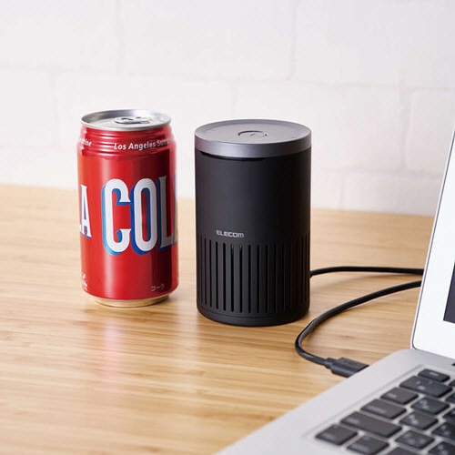 ●350ml缶のようなサイズ感の円筒形で、デスクで場所を取りません。