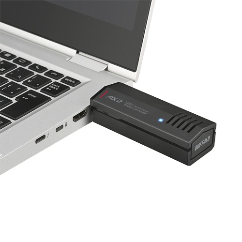 | 商品仕様 | ●タイプ/USBタイプ ●接続インターフェース/USB3.2(Gen1) ●規格/Wi-Fi 6(11ax) ●データ転送速度/最大1201Mbps ●寸法/W80×D22×H30mm ●重量/44.6g ●保証期間/1年 |