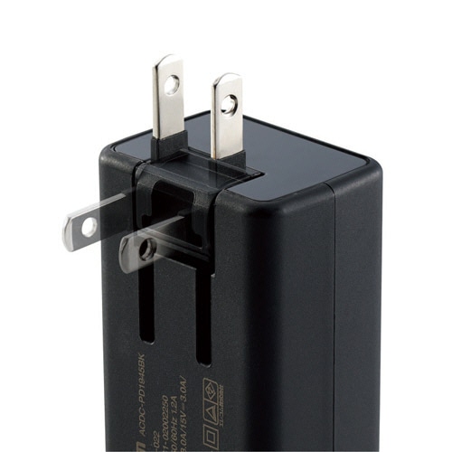 | 商品仕様 | ●コネクタ形状(ケーブル)/USB Type-Cオス ●電源/AC100-240V 50/60Hz ●ケーブル長さ/2m ●寸法/W68×D30×H40mm ●重量/約165g ●色/ブラック ●入力電圧/電流/1.2A ●出力電圧/電流/5V/3A、9V/3A、15V/3A、20V/2.25A ●保証期間/1年 ●その他仕様/●定格出力電力:45W ●コンセントプラグ仕様:180°スイング構造、絶縁スリーブ搭載 ●対応機種:USB Type-CポートからUSB Power Delivery 3.0(45W)の規格内で充電が可能な機器 |
