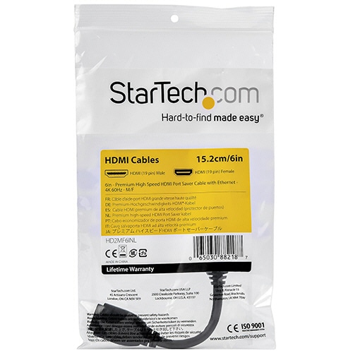 StarTech.com HDMI延長ケーブル 4K/60Hz 15cm ブラック HD2MF6INL 1本