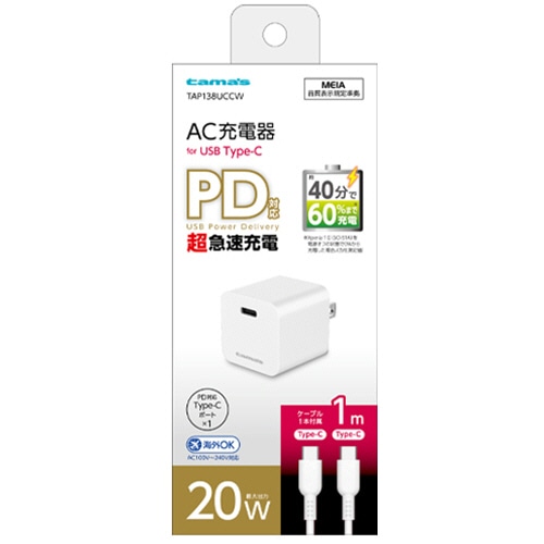 多摩電子工業 PD対応 20W コンセントチャージャー CtoC ホワイト TAP138UCCW 1個