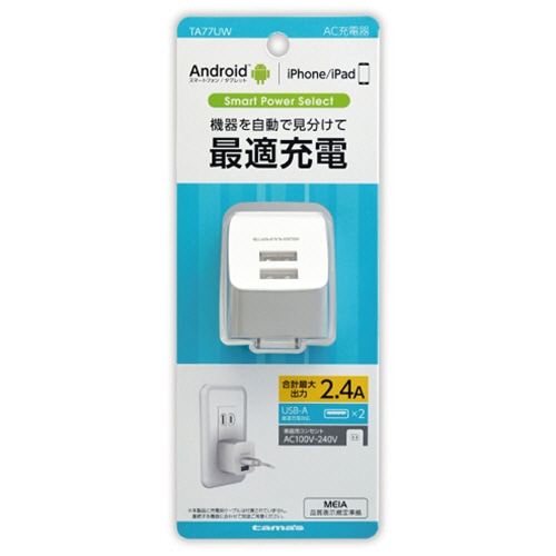 多摩電子工業 コンセントチャージャー 2.4A 2ポート 最適充電 ホワイト TA77UW 1個