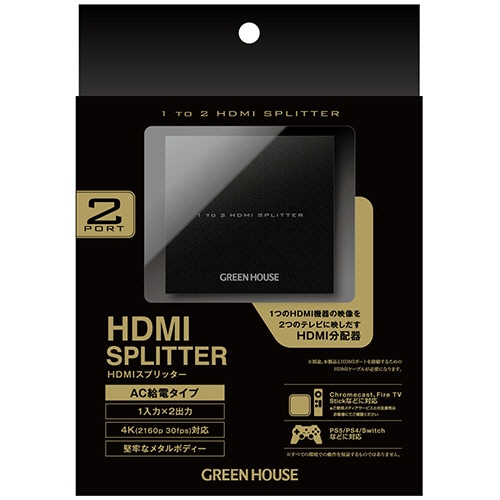 グリーンハウス HDMIスプリッター USB給電 (出力2ポート) GH-HSPG2-BK 1個