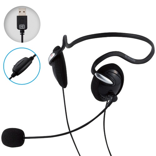 エレコム 両耳USBネックバンドヘッドセット ブラック HS-NB03SUBK 1個
