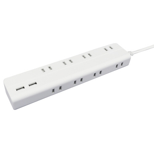 商品仕様 | ●コンセント仕様/2P ●コンセント数/8個口 ●プラグ形状/2Pタイプ ●定格容量/AC:100~125V(最大1400Wまで)、USB出力:DC5V 2.4A(合計最大) ●ケーブル長さ/1m ●寸法/W約48×D230×H30mm ●質量/約310g ●その他仕様/●USBポート:Type-A×2 ●保証期間:1年 ●備考/※寸法はコード・プラグ部除く。 |