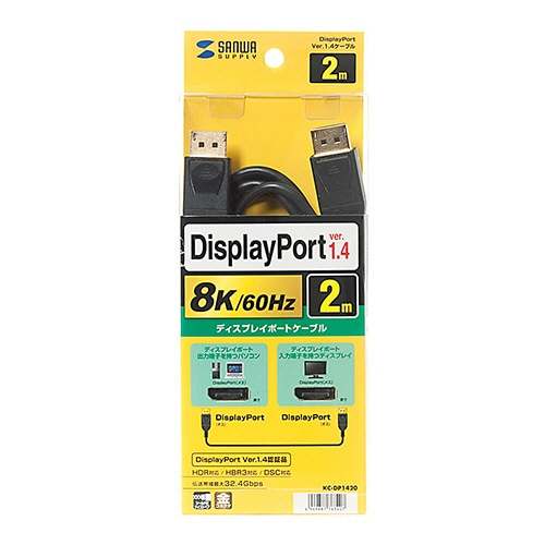 サンワサプライ DisplayPortケーブル(Ver1.4) ブラック 2m(RoHS指令10準拠) KC-DP1420 1本