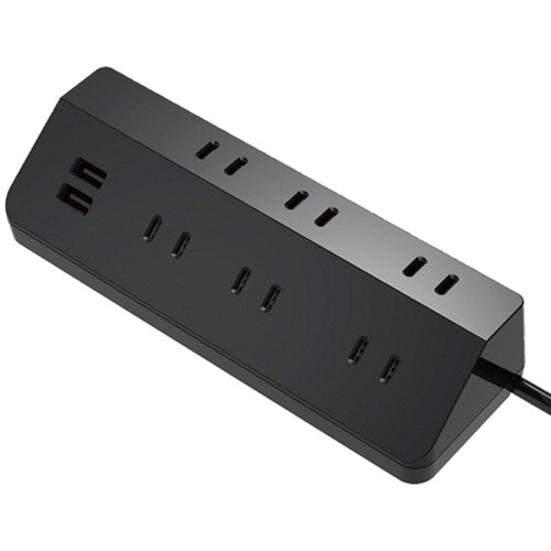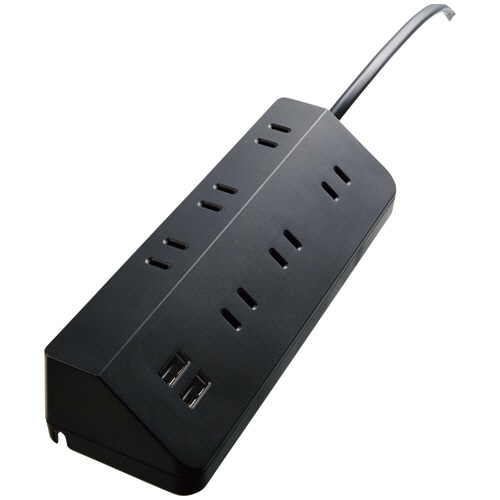 ●コンセント6口、USBポート2口搭載のコード付き電源タップ。