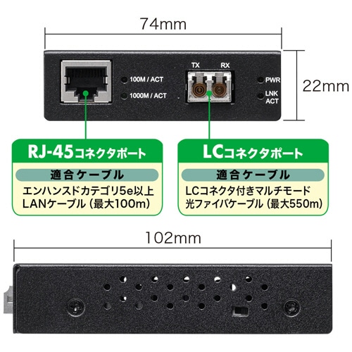 | 商品仕様 | ●寸法/W74×D102×H22mm ●質量/240g ●その他仕様/●マルチモード 1000BASE-SX準拠 ●付属品:ACアダプタ(DC5V/2A)、保護キャップ ●保証期間:6ヵ月 |