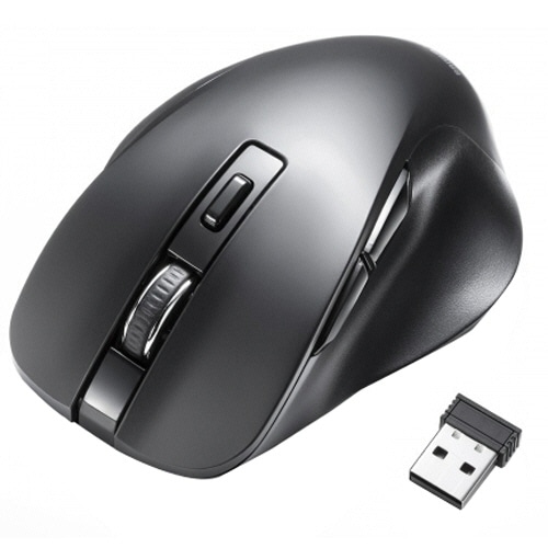 ●握りやすい形状で中型サイズのワイヤレスマウス。カラーはブラックです。