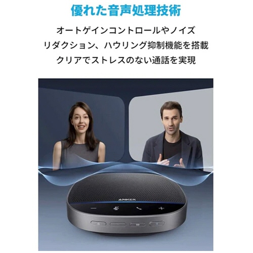 | 商品仕様 | ●接続方法/Bluetooth、USB-C ●寸法/W約133×D133×H37mm ●質量/約422g ●その他仕様/●推奨人数:10~20名程度 ●電源:USB、内蔵バッテリー ●バッテリー容量:6700mAh ●連続通話時間:最大16時間 ●マイク:ステレオマイク×4 ●集音可能範囲:5m ●スピーカー:フルレンジ ●出力:10W ●付属品:Bluetooth USB アダプタ、USB-C & USB-Cケーブル、トラベルポーチ ●保証期間/18ヵ月(Anker会員登録後6ヵ月延長) |