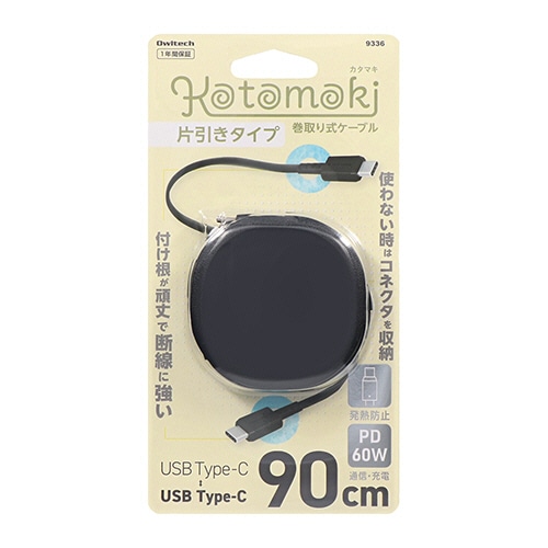 オウルテック C to Cケーブル 片引き巻取り式 PD60W ブラック 90cm OWL-CBKRPCC90-BK 1個