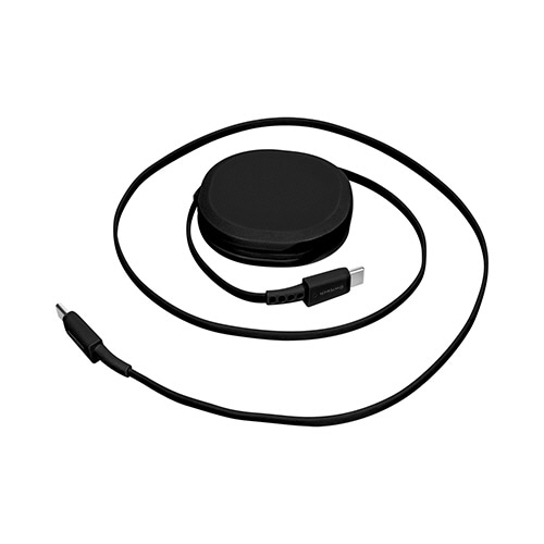 ●PD60W充電/データ通信対応 温度センサー搭載の片引き巻取り式Type-C to Type-Cケーブル。カラーはブラックです。