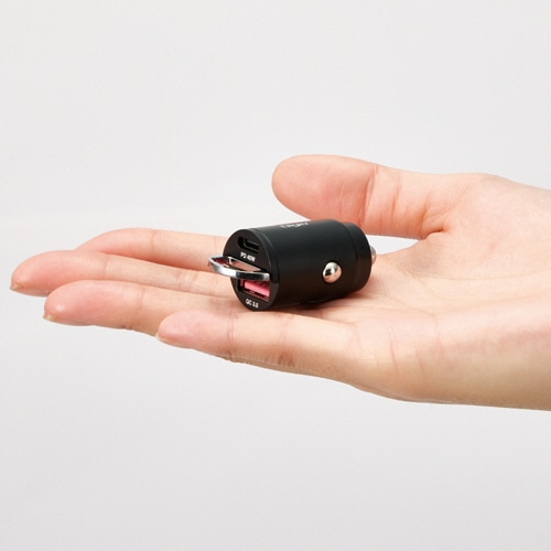 商品仕様 | ●コネクタ形状(本体)/USB-A×1、USB-C×1 ●寸法/W約24×D21×H40mm ●重量/約20g ●色/ブラック ●出力電圧/電流/合計45W |