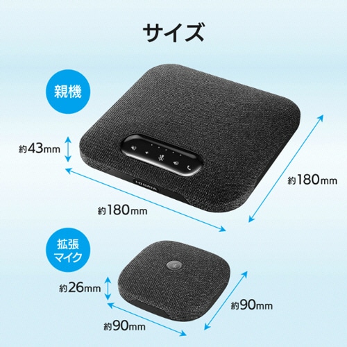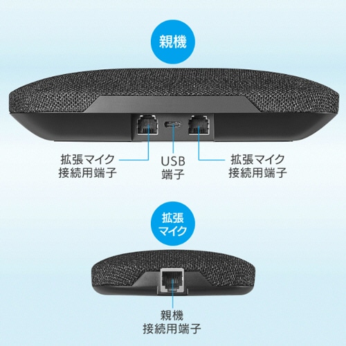 ●専用の拡張マイクが2個付属しているので、拡張することでより広い会議室で使用できます。