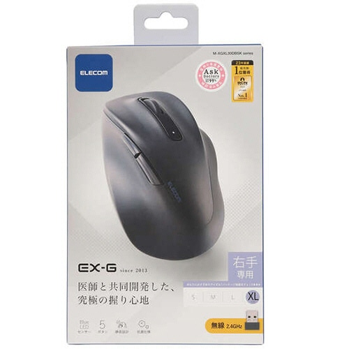 エレコム 静音 2.4GHz無線マウス EX-G 5ボタン XLサイズ ブラック M-XGXL30DBSKBK 1個