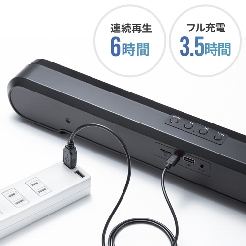 ●バッテリーを内蔵することでUSB給電ながら最大20Wのハイパワー出力を可能にしたスリムなサウンドバースピーカーです。