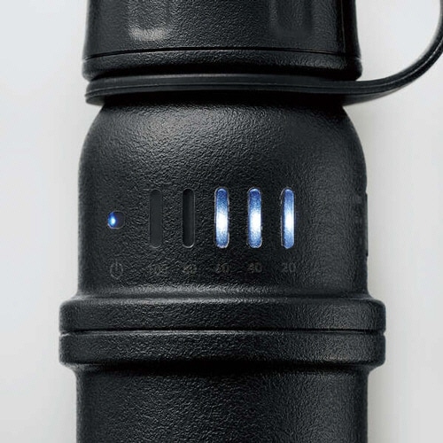●リチウムイオン電池を衝撃や振動から守るクッション構造とJIS保護等級IP67相当の防水防塵性能で、屋外での落下や水濡れからバッテリーを守ります。容量5000mAhのブラックです。
