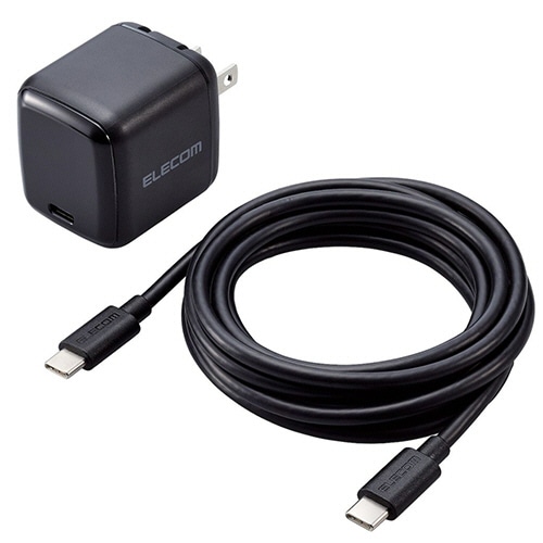 エレコム USB PowerDelivery 65W AC充電器(C-Cケーブル付属/2m) ブラック ACDC-PD8765BK 1個