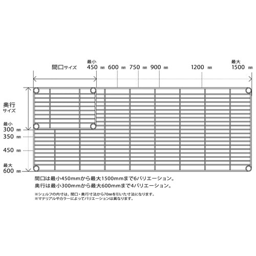 | 商品仕様 | ●本体/パーツ/パーツ ●寸法/W1500×D600×H30mm ●重量/7.2kg ●色/クローム ●耐荷重/約135kg ●材質/クロームメッキ(クリアコーティング仕上げ) ●必要工具/ゴムハンマー ●製造国/台湾 ●付属品/テーパードスリーブ(ブラック)4組 ●備考/※荷重については垂直荷重(等分布)使用での耐荷重です。 ※間口1500mmのワイヤーシェルフには補強用スネークが2本入ります。 ※間口1500mmのワイヤーシェルフにはシェルフインシェルフ、ハンギングレール、ポケット(ボックスタイプ)は取り付けられません。 |