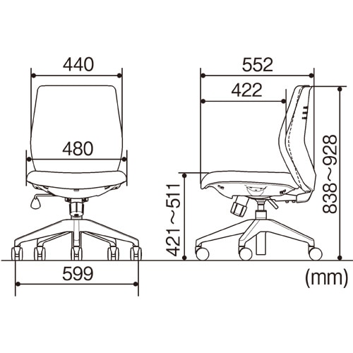 ●寸法/W599×D552×H838~928mm