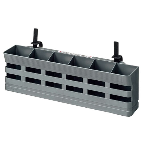 商品仕様 | ●収納本数/6本 ●寸法/W約412×D95×H130mm ●重量/約600g ●色/ダークグレー ●材質/HIPS ●付属品/固定ベルト2本、表示ラベル1枚、取扱説明書 ●その他仕様/●耐荷重:2100g(折りたたみ傘1本あたりの重さ350gまで) ●底面1マスあたりの寸法:約W65×D65mm ●備考/※縦のフレームに接しない部分、固定ベルトがパネルで通せない部分、段差が1cm以上ある部分には取り付けできません。 |