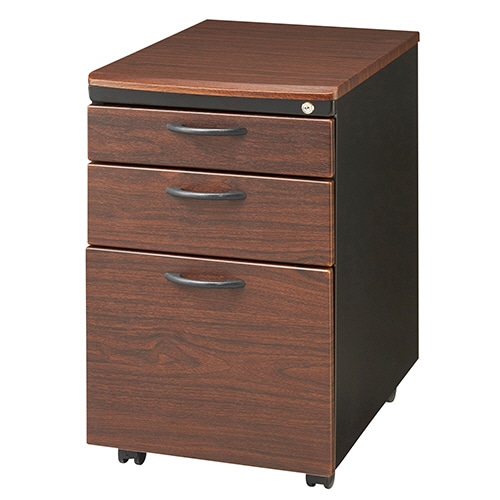 ●引出しオールロック付、ブラウン&ブラック色の3段ワゴン。