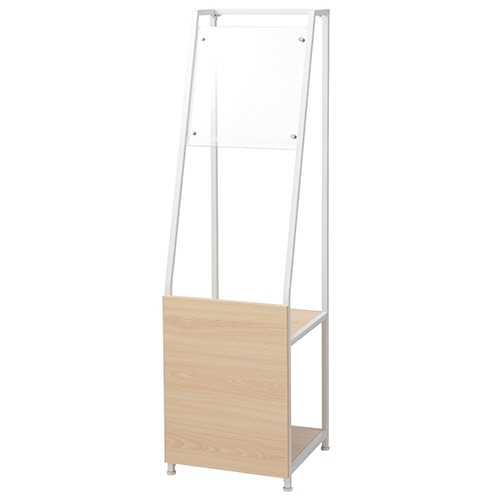 | 商品仕様 | ●寸法/W350×D350×H1250mm ●重量/7.4kg ●色/フレーム:ホワイト、前面パネル:木目ナチュラル ●材質/本体:スチール(粉体塗装)、前面パネル:MDF板(メラミン化粧合板)、案内板パネル:アクリル板 ●必要工具/プラスドライバー ●製造国/中国 ●備考/※メーカーの都合により、仕様が変更になる場合がございます。 |