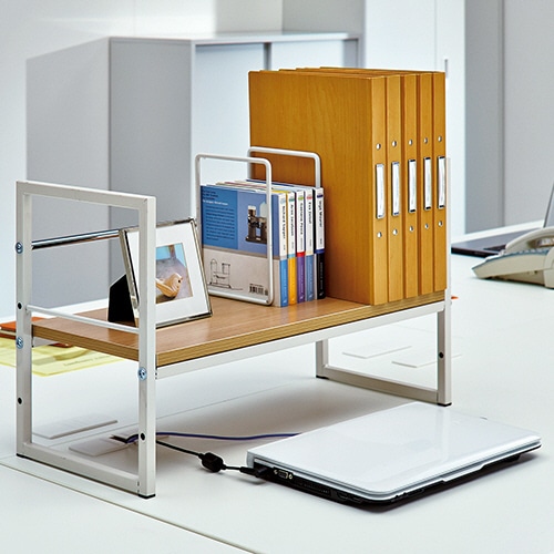 | 商品仕様 | ●タイプ/机上棚 ●外寸/W590×D250×H360mm ●重量/3.6kg ●色/ウッドナチュラル ●内寸/W560×D250×H65・140mm ●耐荷重/25kg ●材質/天板:合成樹脂化粧繊維板(塩化ビニル樹脂)、フレーム:スチール(エポキシ樹脂塗装、クロムメッキ) ●必要工具/プラスドライバー ●製造国/中国 ●備考/※外寸のHは棚板下段設置時。棚板上段設置時はH375mm |