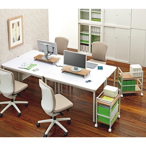 ●机の上がスッキリ使える幅390mmホワイトのモニタースタンド。