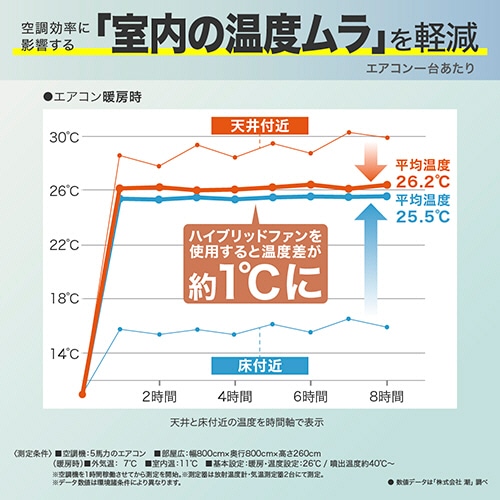 ●冷暖房の温度ムラを攪拌、空調効率が向上します。