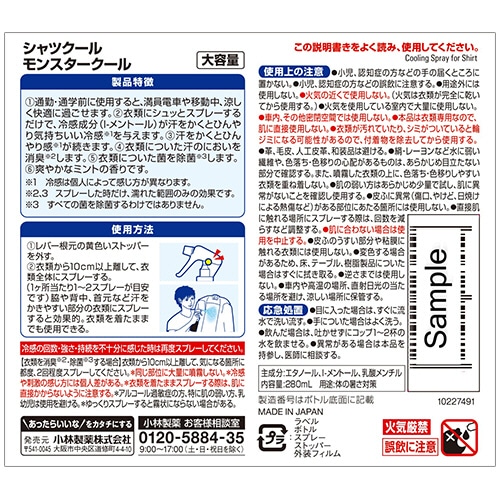 小林製薬 熱中対策 シャツクール モンスタークール 大容量 280mL 1本