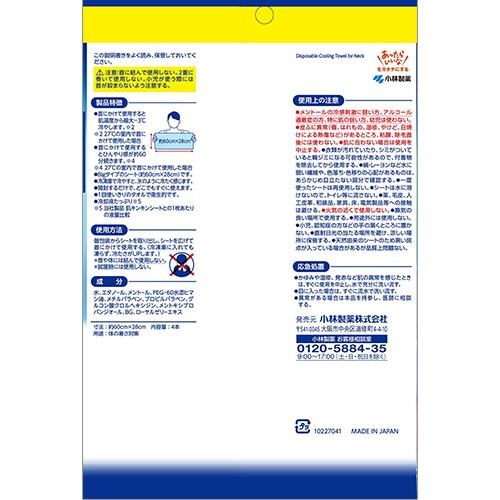 ●首にかけて使用する、メントール配合のひたひたシート。Bigタイプ・約60×28cm、4本入です。