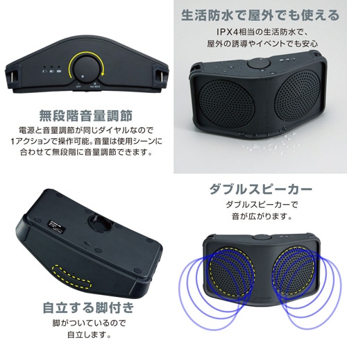 ●IPX4相当の生活防水で、屋外の誘導やイベントでも安心。