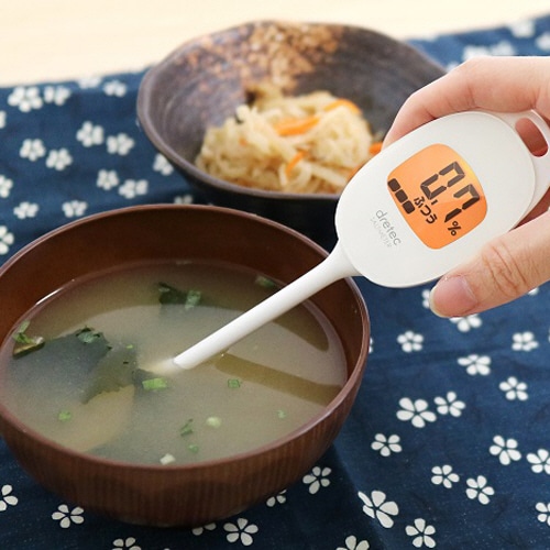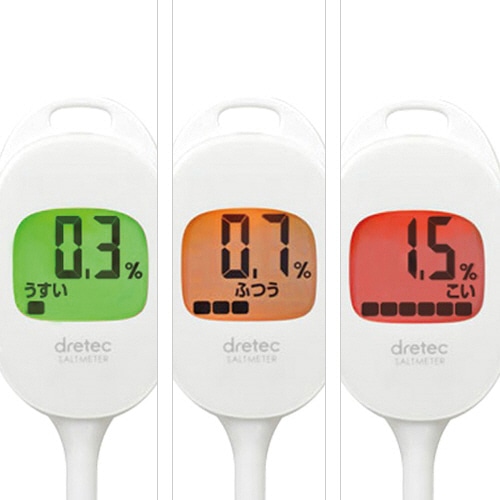 | 商品仕様 | ●寸法/W43×D18×H170mm ●重量/約37g ●材質/本体:ABS樹脂、パネル:アクリル ●その他仕様/●塩分測定範囲:0.3~1.5% ●温度測定範囲:-10~115℃ ●付属品:お試し用電池(ボタン電池CR2032×1個) ●オートパワーオフ ●保証期間:1年 ●備考/※重量は電池含む |