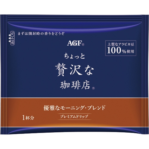 | 商品仕様 | ●種類/優雅なモーニングブレンド ●内容量/8g ●賞味期限/商品の発送時点で、賞味期限まで残り120日以上の商品をお届けします。 ●備考/※内容量は1袋あたり ※メーカー都合により、パッケージデザインおよび仕様が変更になる場合がございます。 ●シリーズ名/ちょっと贅沢な珈琲店 |