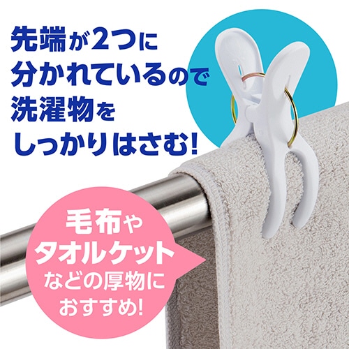 大きなつまみが特長の厚物も干せる洗濯ピンチです。