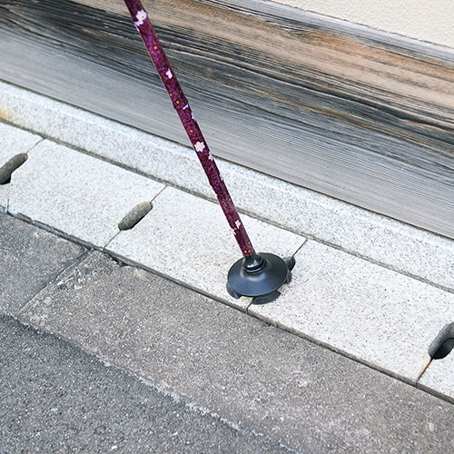 ●底面が安定して作られているので、杖だけでも自立します。杖を立て掛ける場所がなくても、自立させて置いておくことができて便利です。