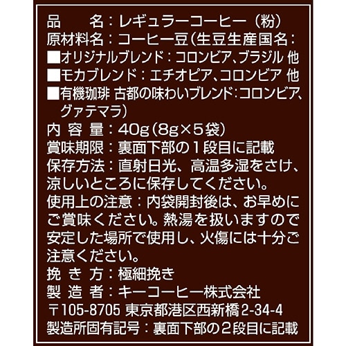 キーコーヒー ドリップオン 京都イノダコーヒ アソートパック 8g 1箱(5袋)