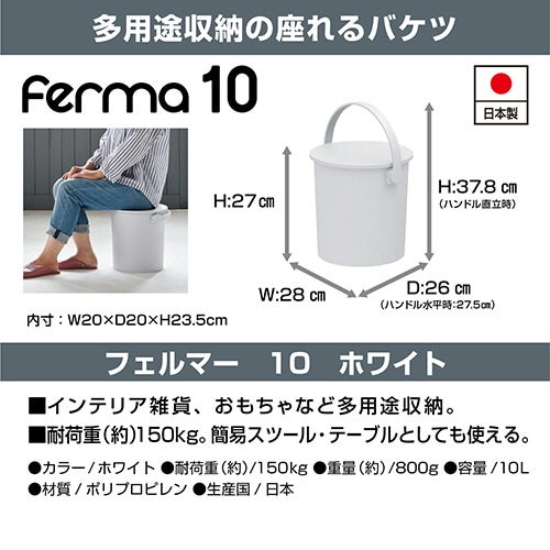 | 商品仕様 | ●容量/約10L ●寸法/W約280×D275×H270mm ●有効内寸/約W200×D200×H235mm ●耐荷重/約150kg ●重量/約0.8kg ●色/ホワイト ●材質/ポリプロピレン ●その他仕様/●ハンドル直立時寸法:約W280×D260×H378mm ●備考/※製品の仕様およびカラーは、予告なく変更する場合がありますのでご了承ください。 |