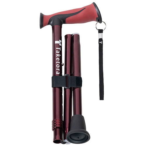 竹虎 バンブーステッキ 折りたたみ杖 ワイドグリップ ワインレッド 1本