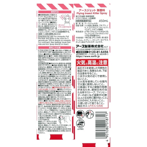 ●ジェット噴射の速効性と拡散力で、すばやいハエやしつこい蚊も手軽に退治できます。ハエ蚊だけでなく、ゴキブリ、ノミ、トコジラミ(ナンキンムシ)、イエダニ、マダニの駆除にも使用できます。