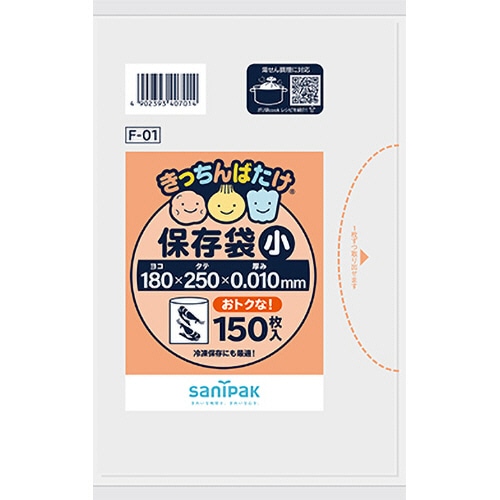 日本サニパック きっちんばたけ 保存袋 半透明 小 0.010mm 増量 F-01 1パック(150枚)