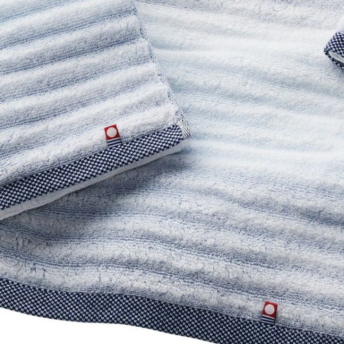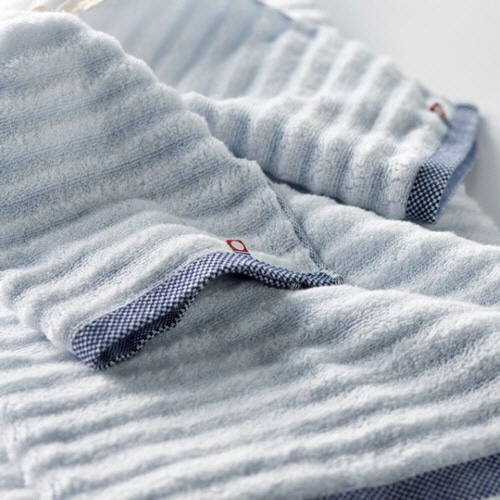 ●厳選された無撚糸を使い、ジャカード織りの技術でウェーブのような凹凸を表現したウォッシュタオル ブルーです。
